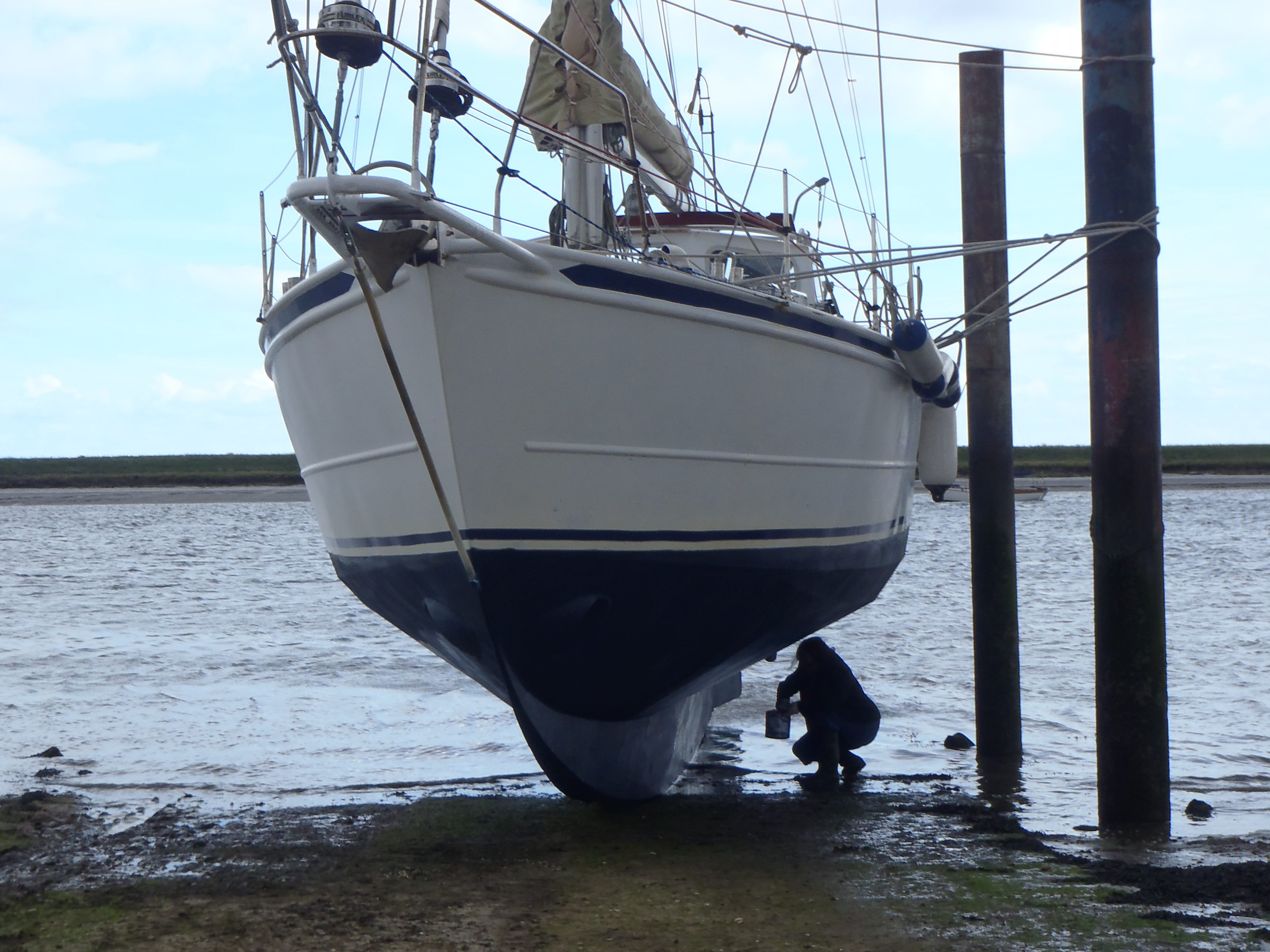 | No 673: Ambition II scrubbing off on Paglesham Hard, 2015 [Source: Richard Bessey.] |