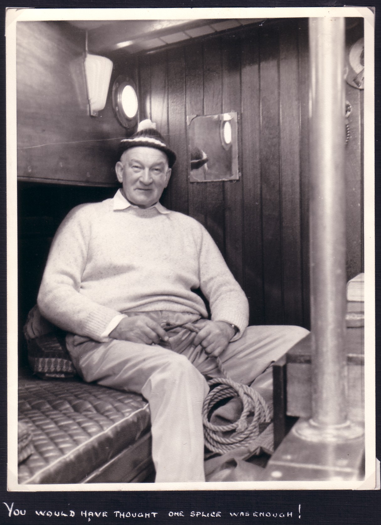 No 359: Len, splicing in the cabin. (1951) [Source: Photo by Clem Harris.]