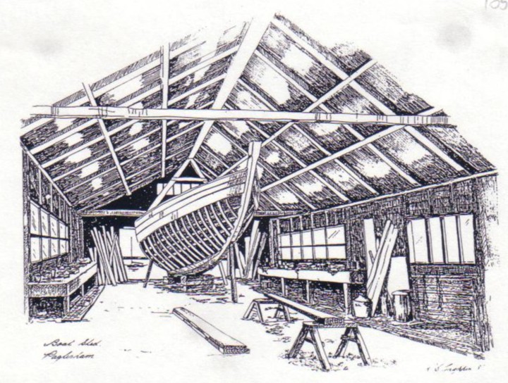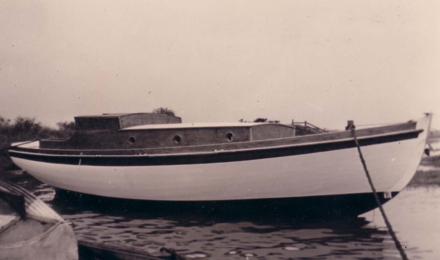 | No 33: Sketch of Halloween at hull planking stage by Rodney Choppin (1950) [Source: Rodney Choppin.] |