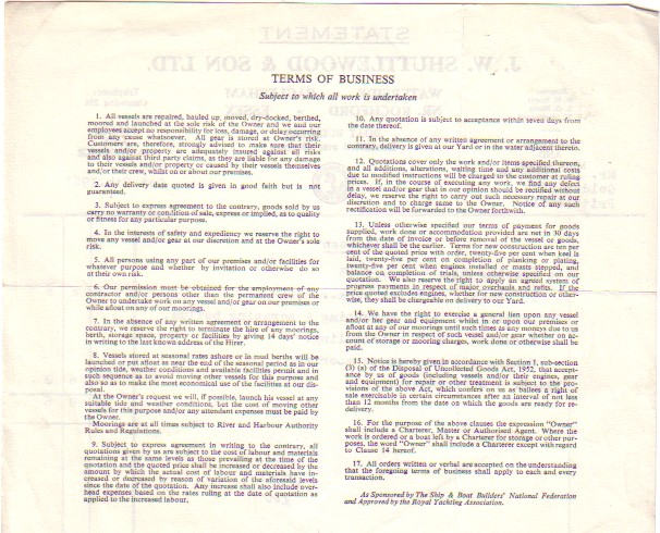 | No 329: Terms & conditions on back of JW Shuttlewood Ltd bill. (1963) [Source: Rodney Choppin.] |