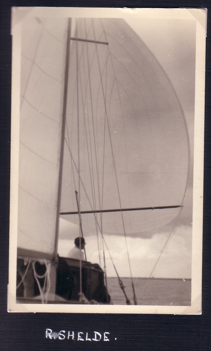 | No 363: Spinnaker flying in the Schelde (1961) [Source: Rodney Choppin.] |