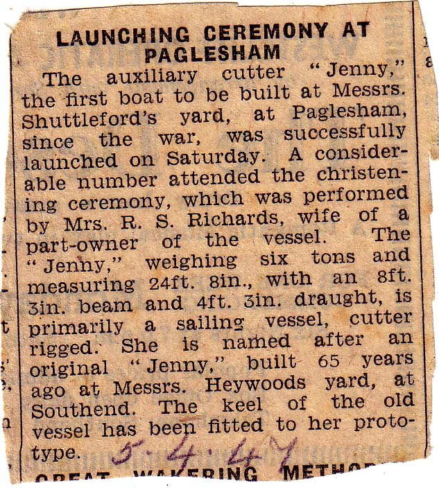 No 263: Newspaper cutting of launch (1947) [Source: Barbera Quillam.]