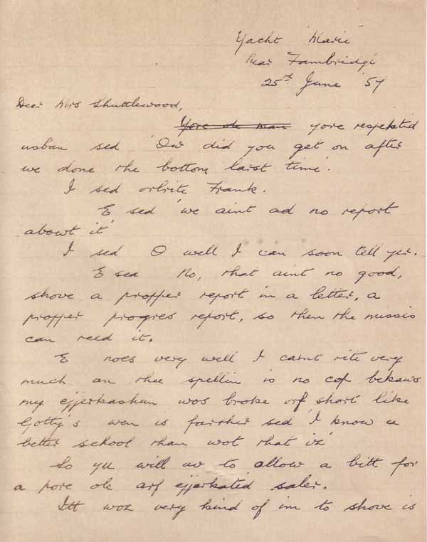 | No 376: Letter to Mrs Shuttlewood from W Hyde (5) (1957) [Source: Barbera Quillam.] |