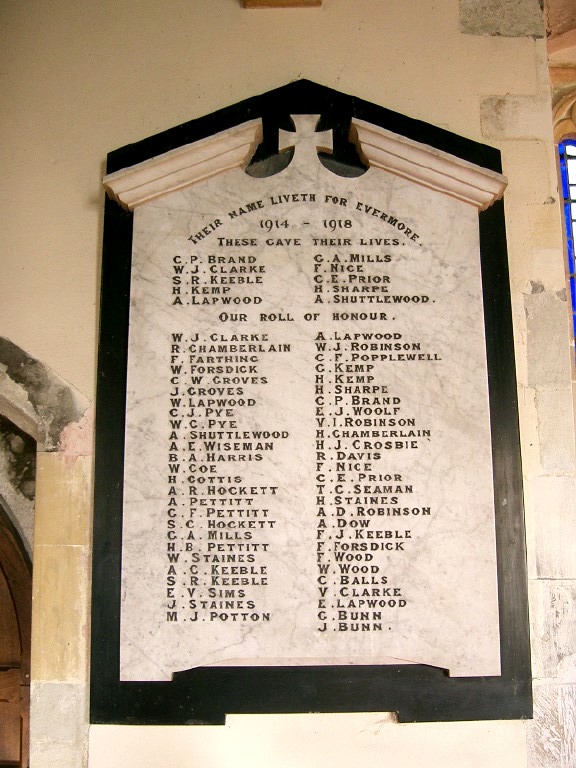 | No 367: War memorial (1914-18) plaque in the church - see research at www.roll-of-honour.com. (2004) [Source: www.roll-of-honour.com.] |
