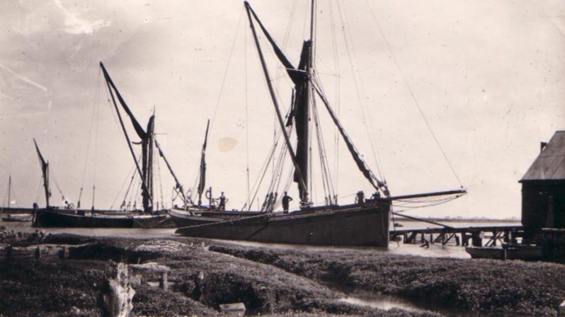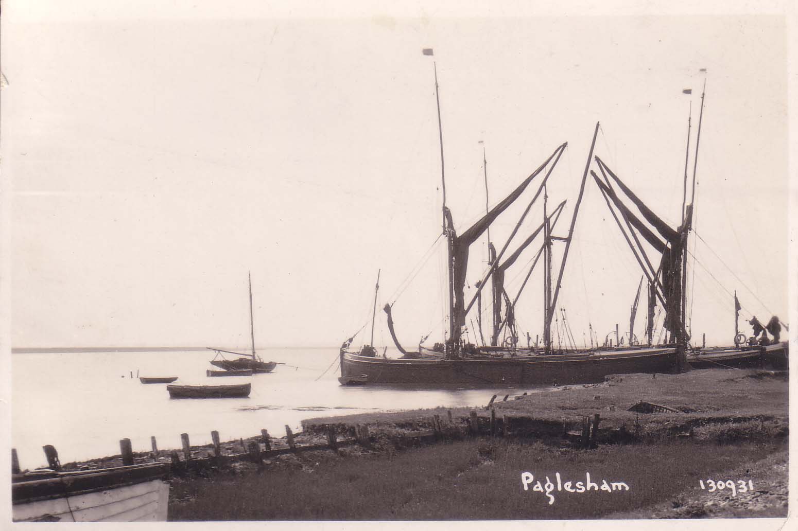 | No 265: Postcard 130931 - barges at Paglesham [Source: Barbera Quillam.] |