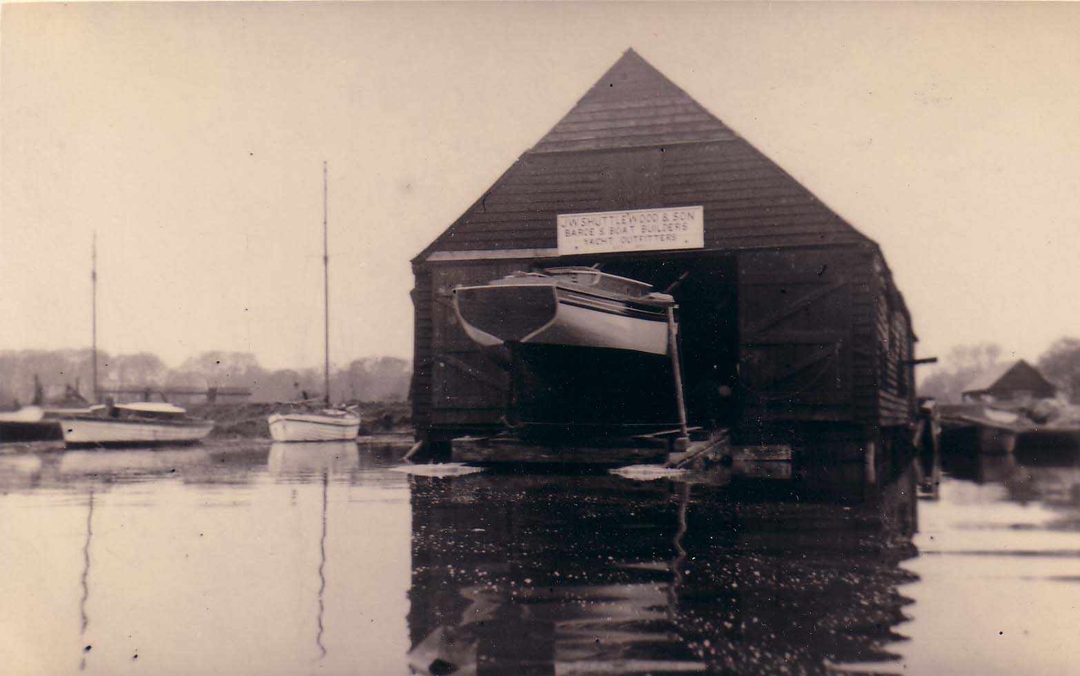 | No 192: Postcard - yacht after launch [Source: Barbera Quillam.] |