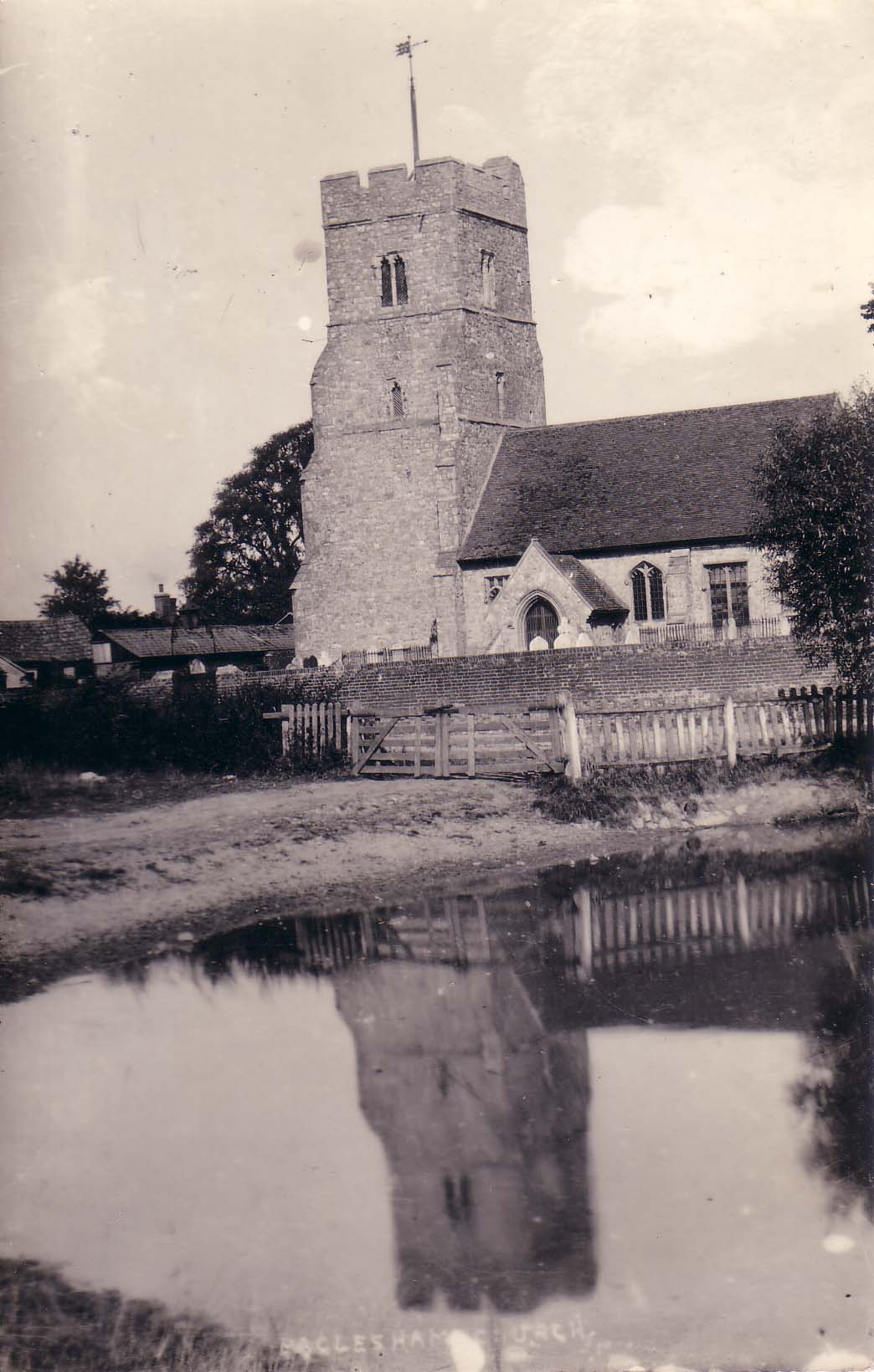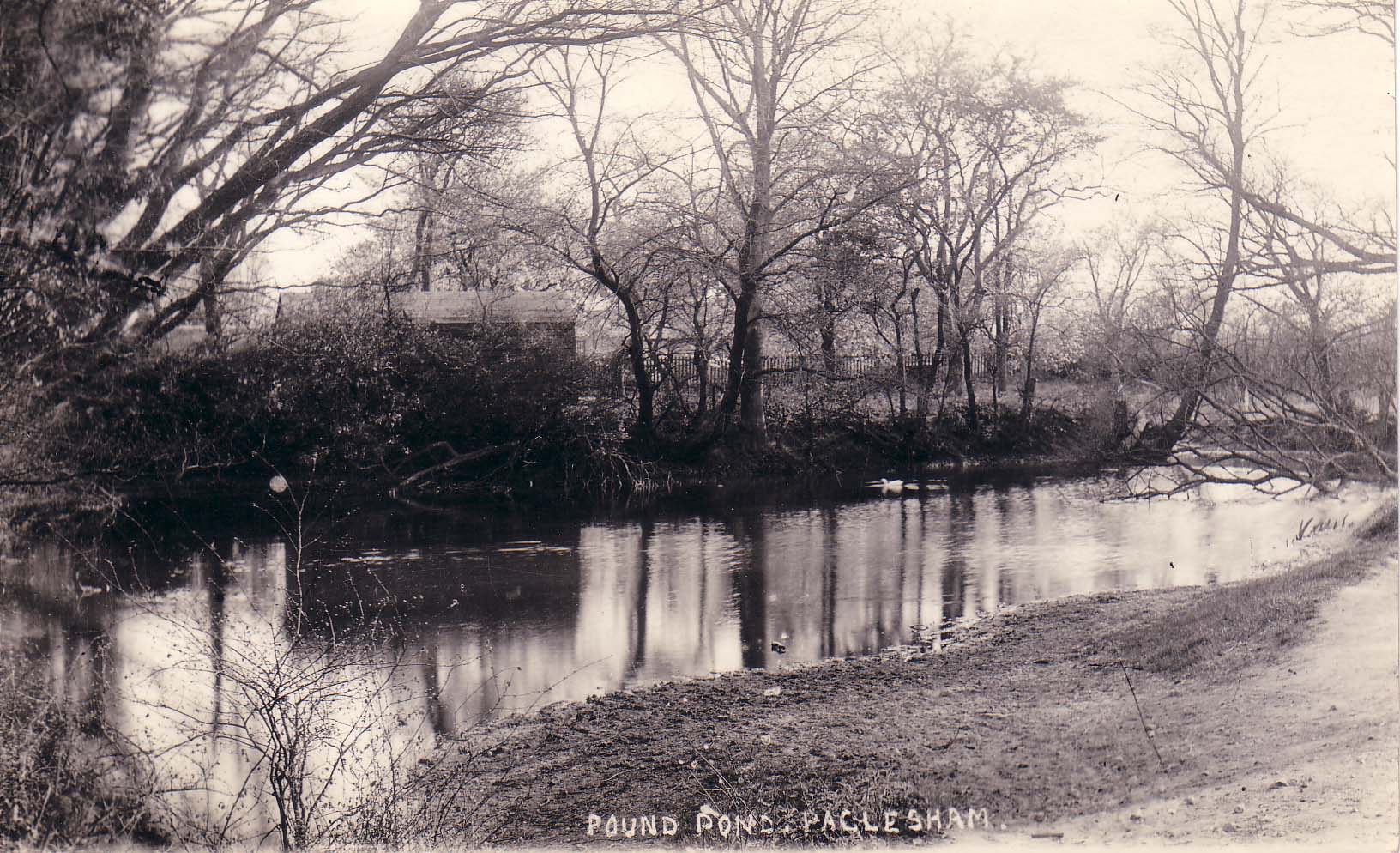 | No 172: Postcard - Church & pond unders snow (1906) [Source: Barbera Quillam.] |