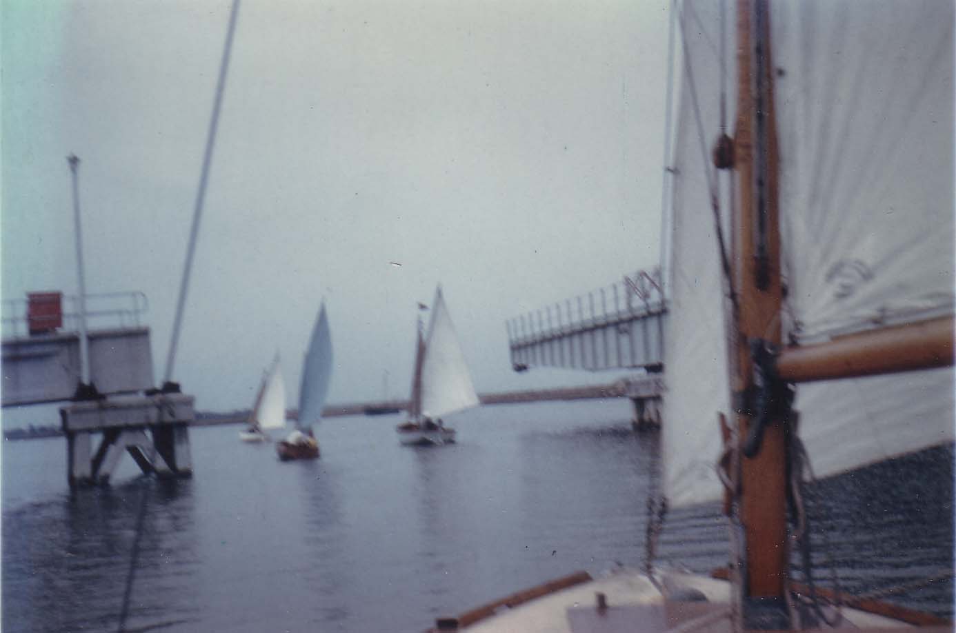 | No 142: Dinghy race passes through Potton swing bridge [Source: Barbera Quillam.] |