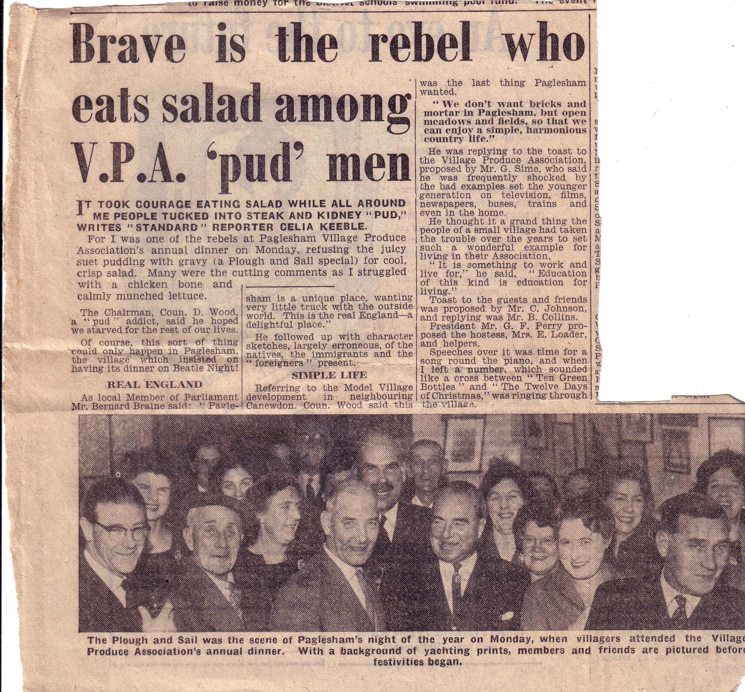 No 278: Newspaper cutting - VPA Supper (probably '60s) [Source: Barbera Quillam.]