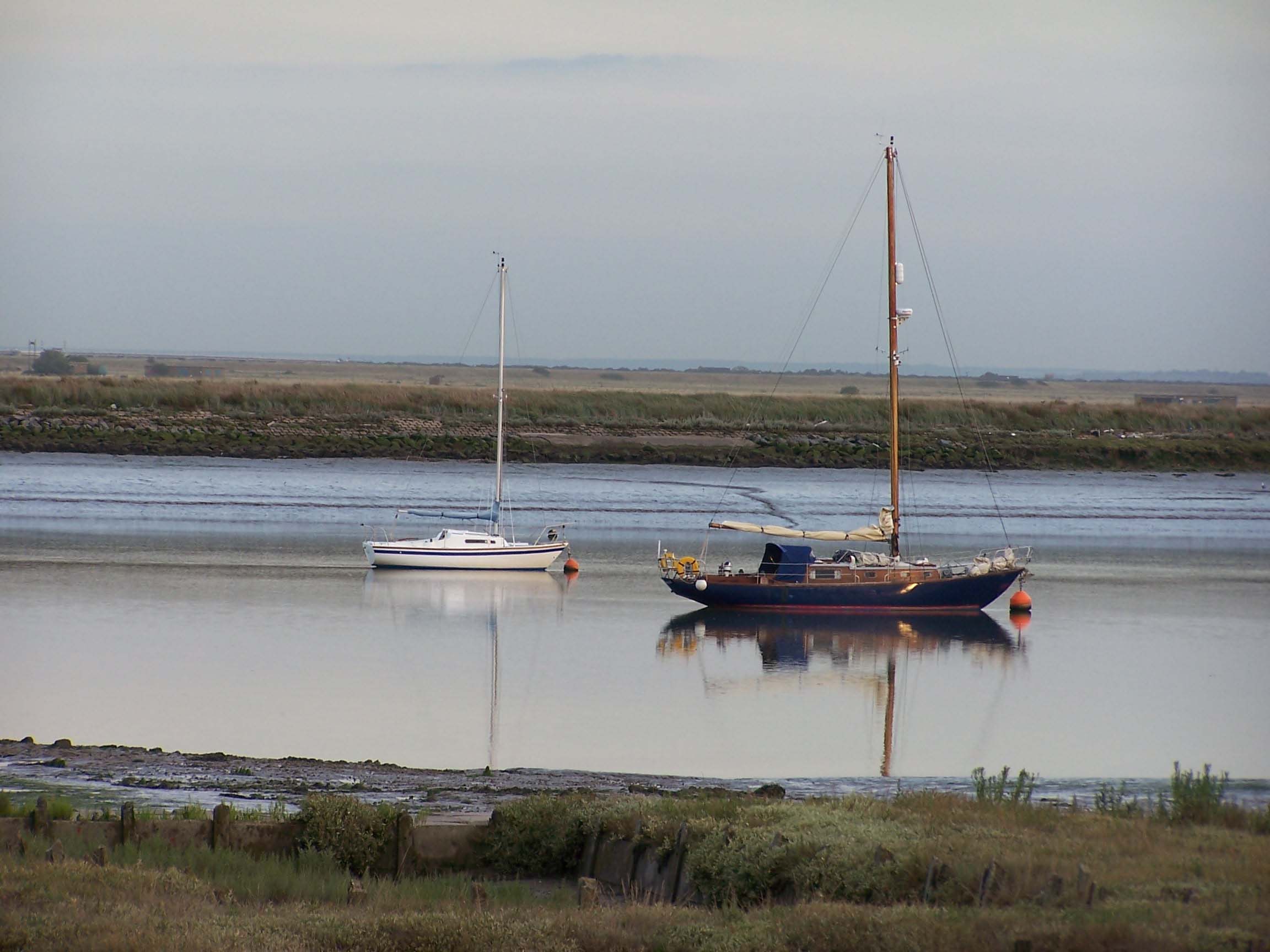 No 739: Philomelle and Stravaig moored in Paglesham Reach (2005) [Source: Richard Bessey.]