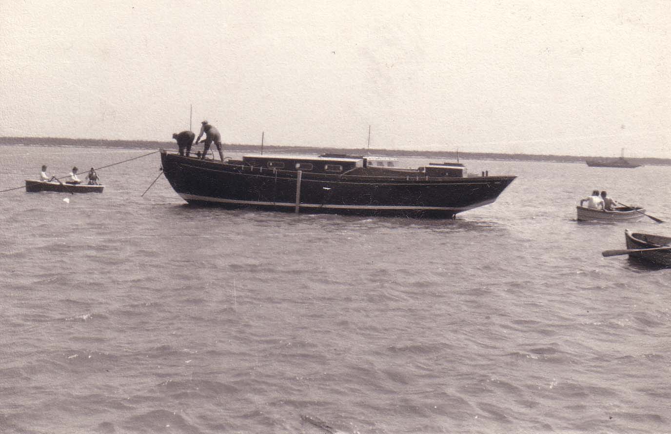 | No 206: Unknown gent being rowed out to his boat (1959) [Source: Barbera Quillam.] |