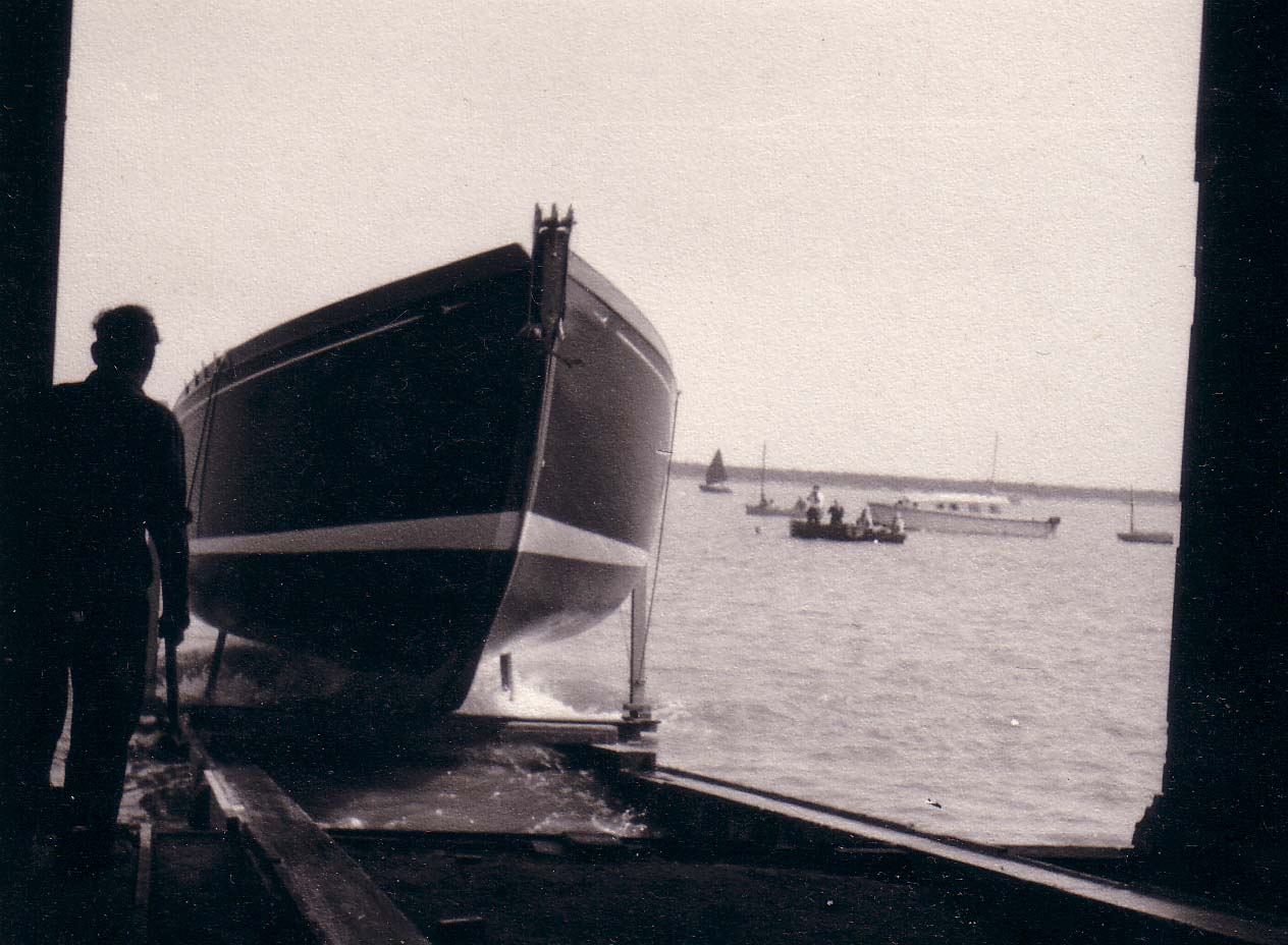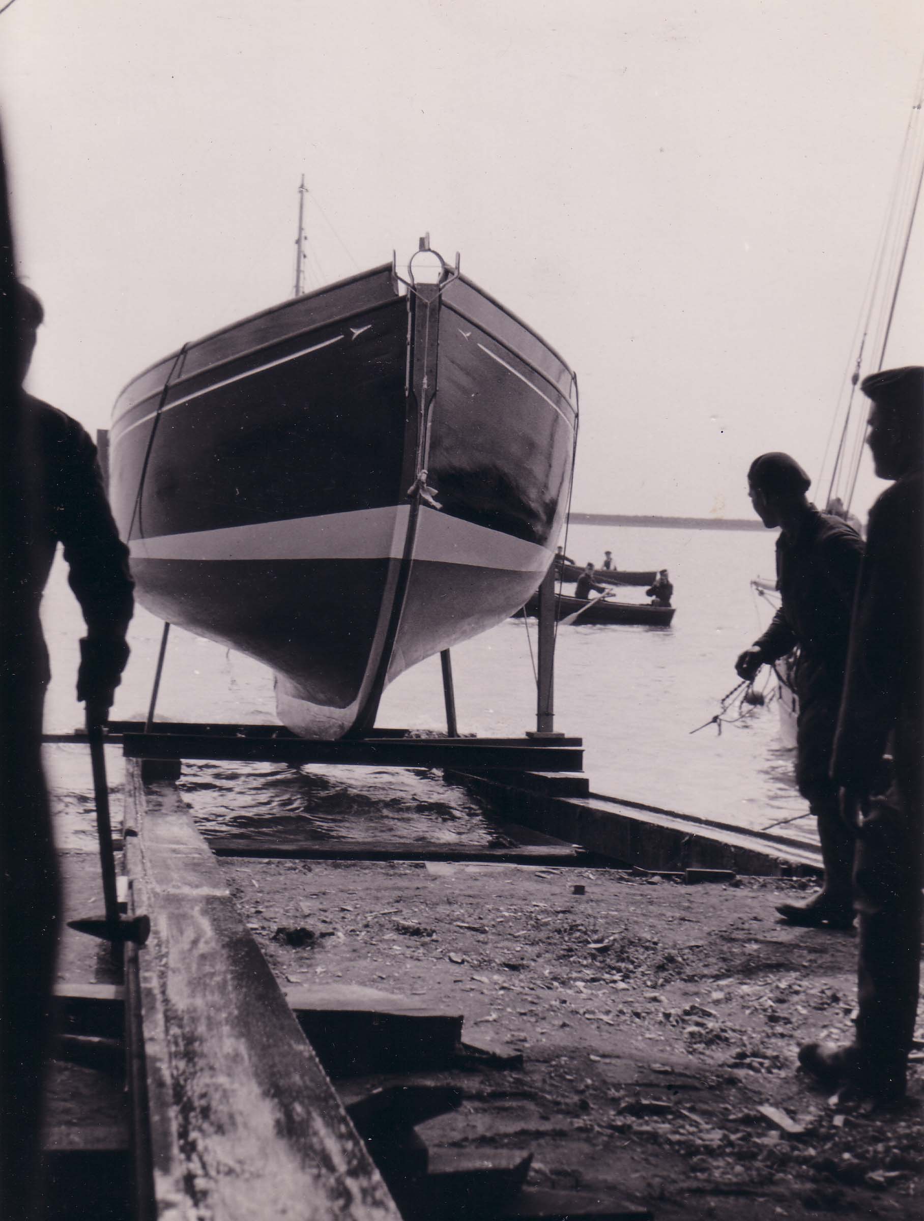 | No 192: Postcard - yacht after launch [Source: Barbera Quillam.] |
